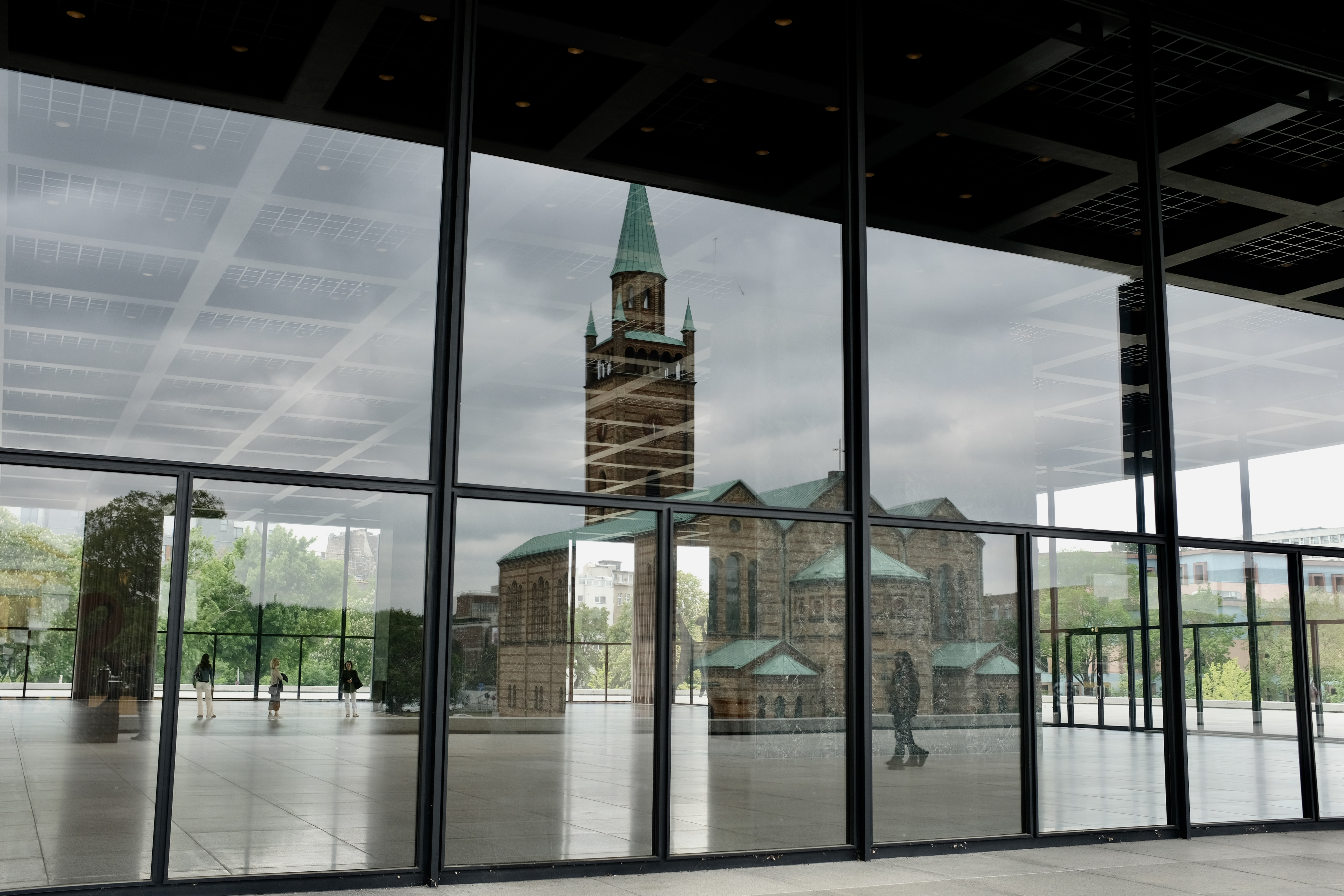 St.-Matthäus-Kirche reflected in Neue Nationalgalerie