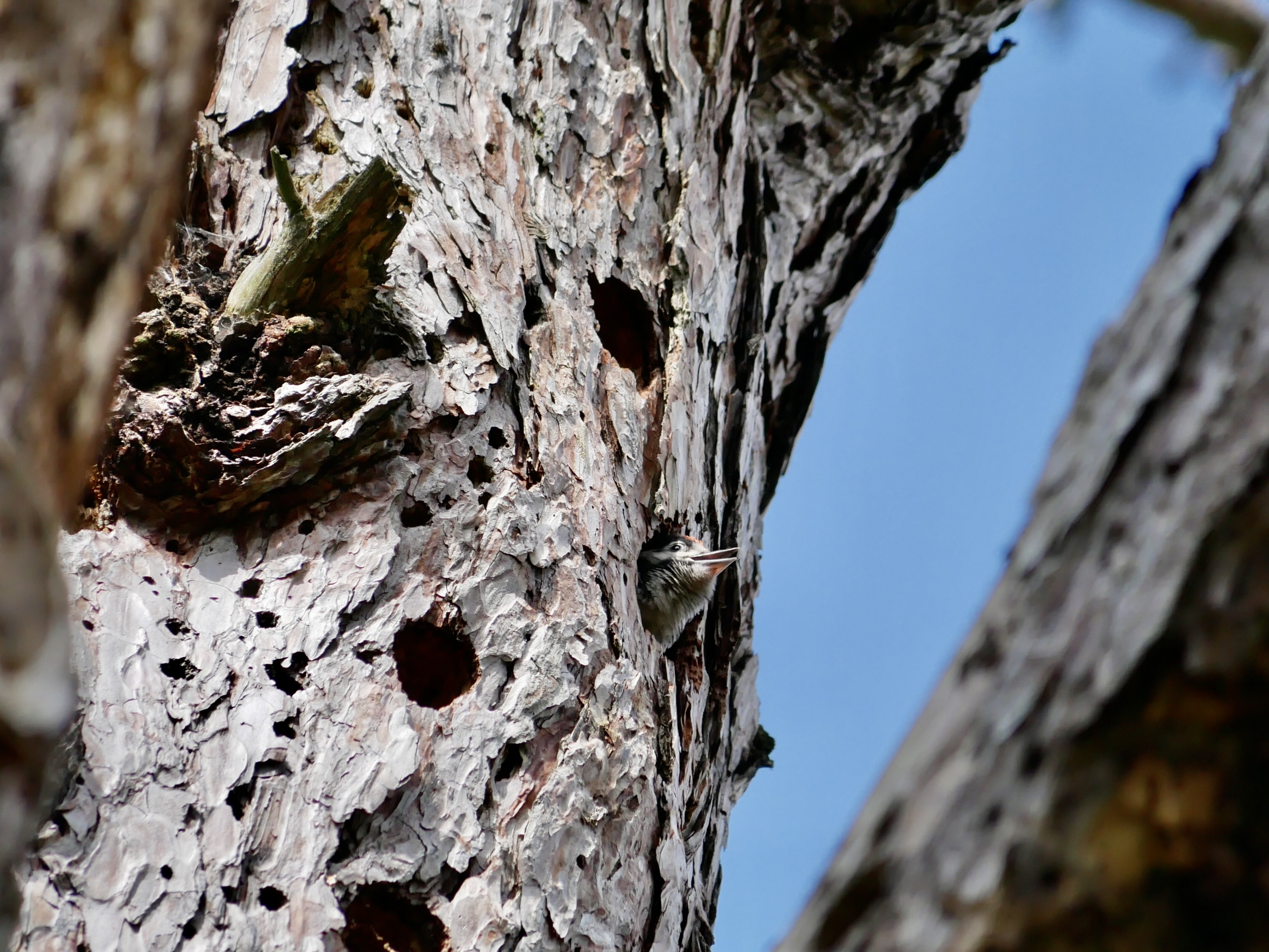 Juvenile great spotted woodpecker (Dendrocopos major), Cathays Cemetery